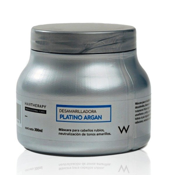 Máscara para el cuidado de cabellos blancos o grises. La fórmula de tratamiento Platino argán neutraliza los tonos amarillentos indeseados y reflejos calientes. El aceite de argán hidrata el pelo dejándolo suave y protegiéndolo de las radiaciones, evitando el cambio de color. Cabello brillante y un color increíble