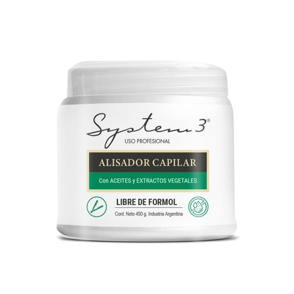 El Alisador capilar de System 3 es libre de formol. Está enriquecido con Aceites y extractos vegetales de Algodón, Soja, Aloe, Manzanilla, Coco, Mirra, Argan, Macadamia, Oliva y Lino. Alisa y repara los cabellos ondulados e indisciplinados dejándolos lacios, suaves y protegidos. Máximo brillo y larga duración.