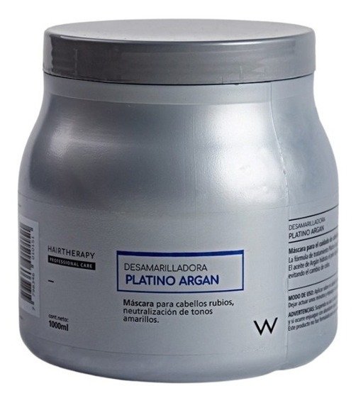 Máscara para el cuidado de cabellos blancos o grises. La fórmula de tratamiento Platino argán neutraliza los tonos amarillentos indeseados y reflejos calientes. El aceite de argán hidrata el pelo dejándolo suave y protegiéndolo de las radiaciones, evitando el cambio de color. Cabello brillante y un color increíble