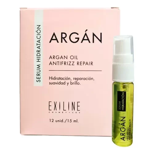 Exiline Argán Serum esta diseñado para restaurar el córtex aportando a las fibras capilares elasticidad y resistencia. A través de su poder Anti frizz controla la estática que se genera en el cabello, protegiéndolo del exceso de calor y evitando su deshidratación por la utilización de planchas y secador de mano. Soluciona el problema de las puntas abiertas y su posible resquebrajamiento, envolviéndolas en una película protectora. Su uso cotidiano proporciona al cabello un aspecto sano y sedoso.